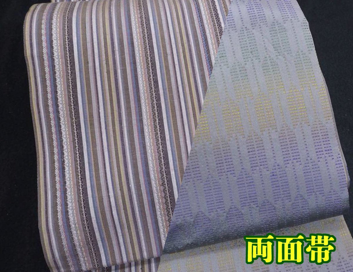 - Club藤★袋帯 リバーシブル 絹芯仕立 矢羽文&縞文様 袋帯 お仕立上(1018)*