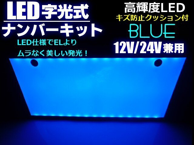 > 同梱無料 トラック可 12V/24V EL以上 青色 美発光 超薄型 LED 字光 ナンバープレート 全面発光 青/ブルー 字光式 E