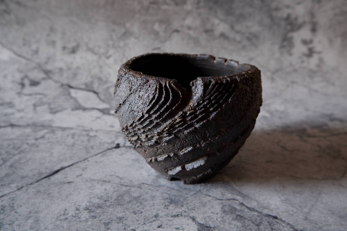 - 【陶房然庵】3.5号黒ブロンズ捻り裂紋鉢494 多肉植物 塊根植物 アガベ グラキリス パキプス 盆栽 植木鉢 作家鉢 鉢皿 沖縄