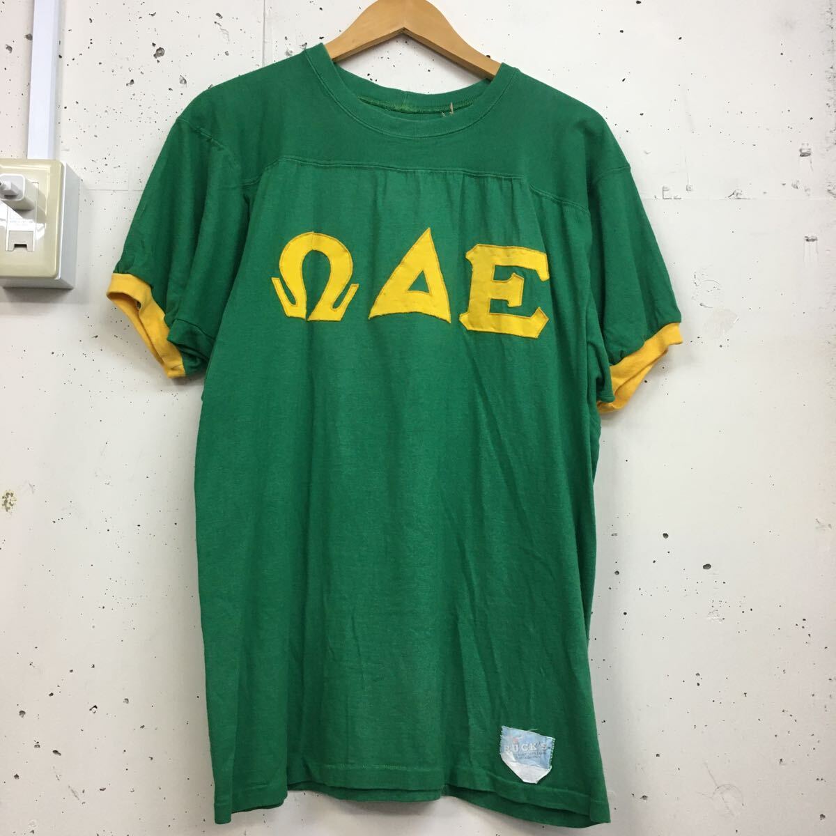 > 90s 90年代 BUCK'S フットボール ギリシャ文字 裾シングルステッチ サイズL グリーン 緑 Tee tシャツ 半袖