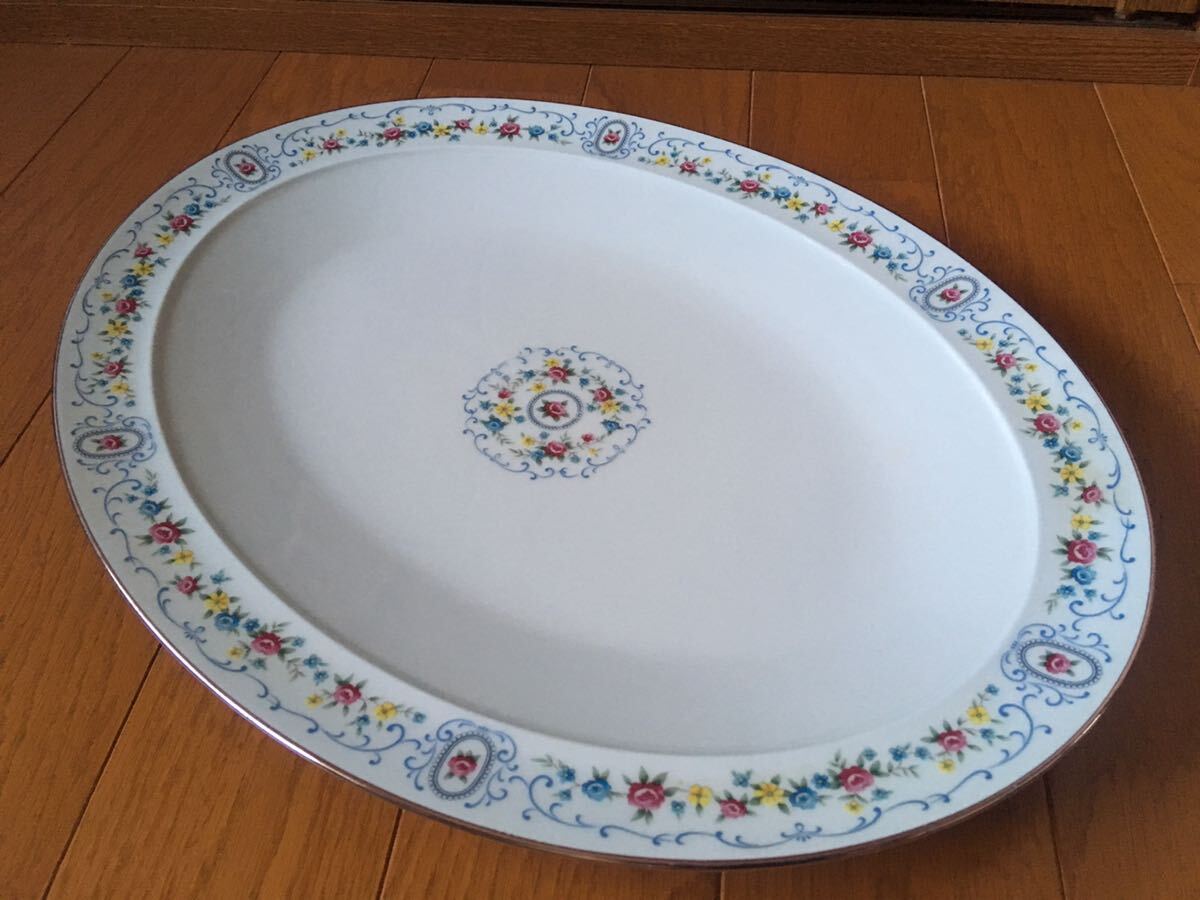 - ノリタケ 41cm オーバルプレート 大皿 楕円 銀縁 水色 ディナープレート Noritake ①