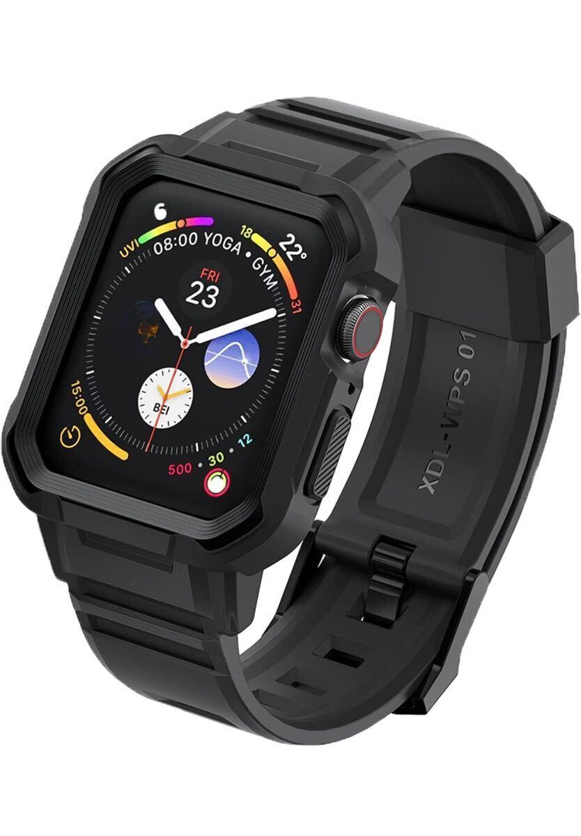 > コンパチブル Apple Watch バンド 42mm 44mm 45mm 一体型 ケース付き アップルウォッチ用 バンド スポーツ バンド TPU (ブラック)