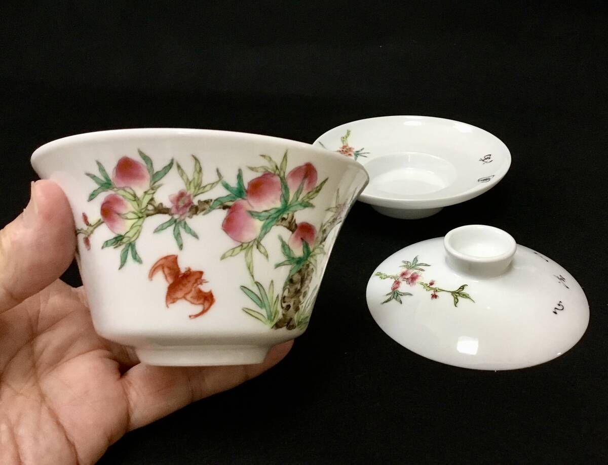 - 大蓋碗「桃と蝙蝠」中国・慎徳堂【中国茶器】レトロなタイプの大きなガイワンです
