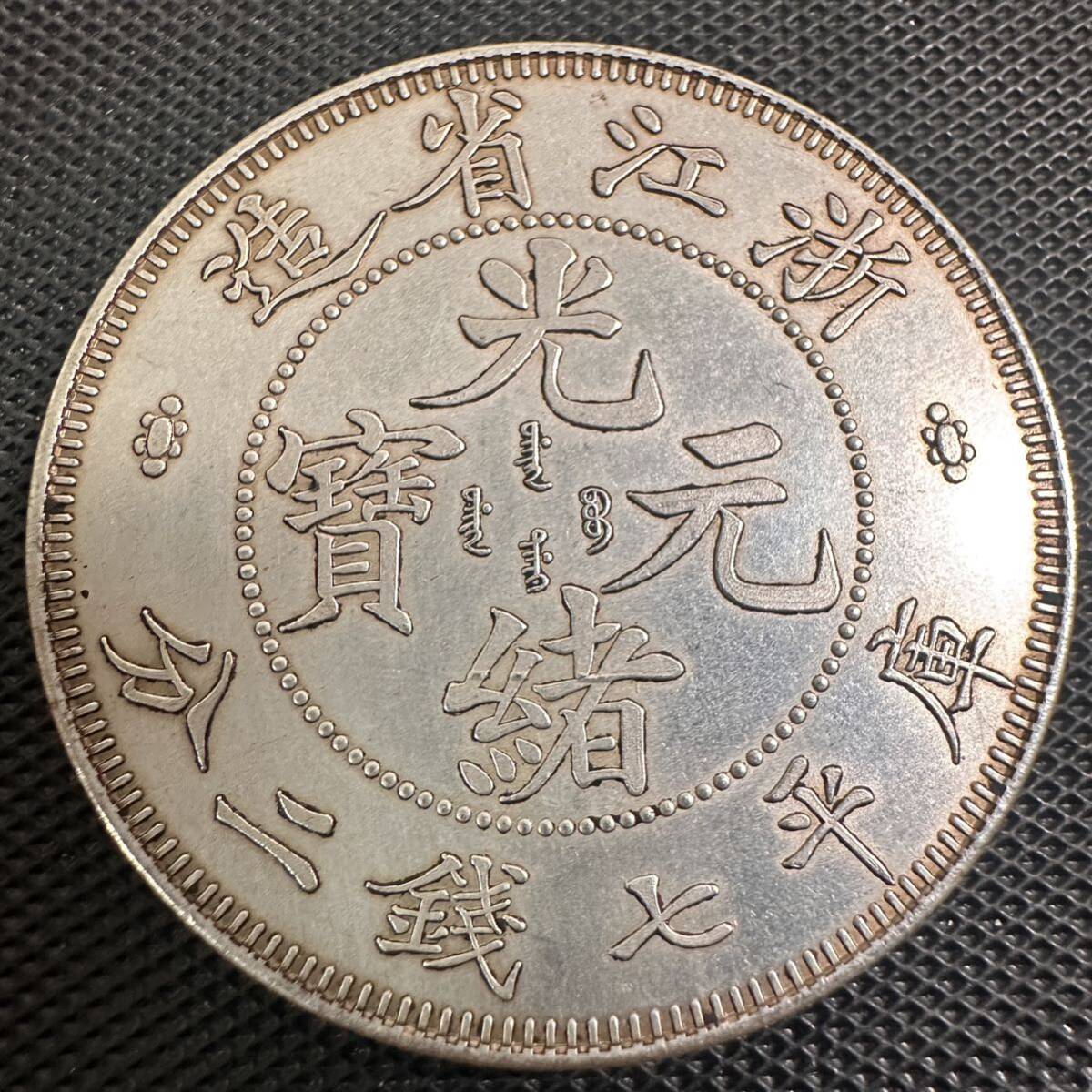 - 中国古銭 大清貨幣 古銭 大型コイン S13 浙江省造 光緒元宝 壹圓 26.5g 庫平七銭二分