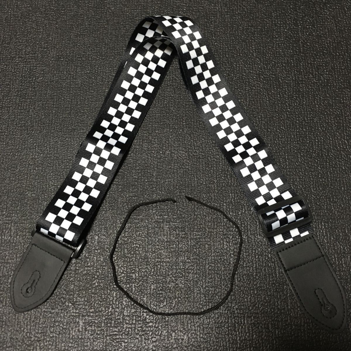 - ☆ 即決・新品!! ギター ストラップ ブラック × ホワイト(チェック柄) ☆