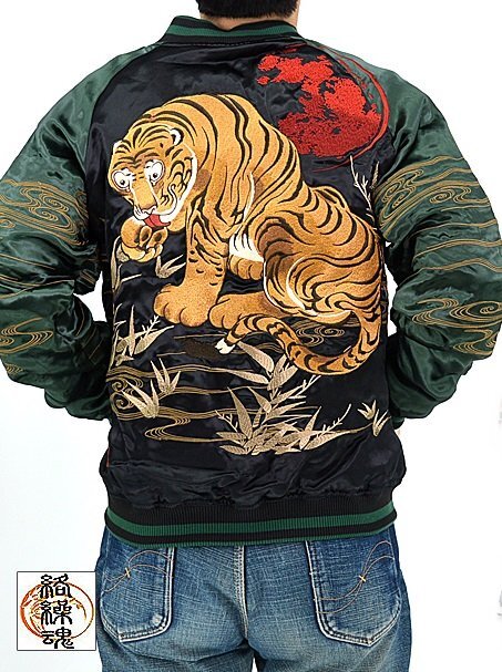- 粋・虎図若冲浮世絵リバーシブルスカジャン◆絡繰魂 B色XXLサイズ 232030 和柄 和風 刺繍 スーベニアジャケット