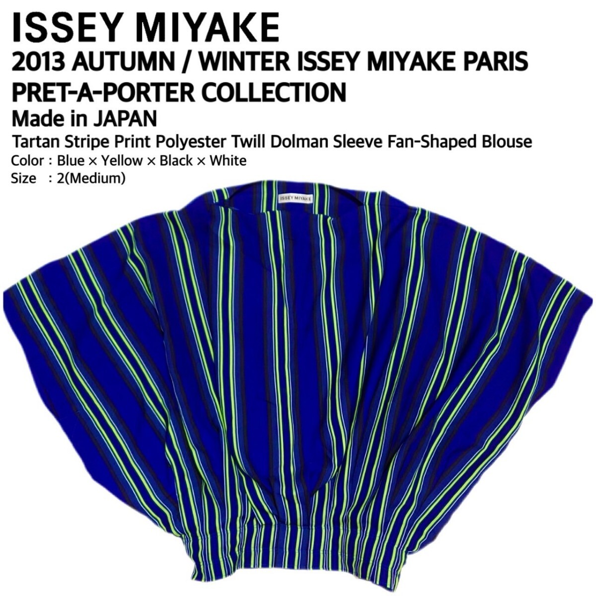 - 超稀少 2013AW ISSEY MIYAKE イッセイミヤケ 日本製 最高級タータンストライプポリエステルツイルドルマンスリーブ扇形ブラウス 2/M 極美品