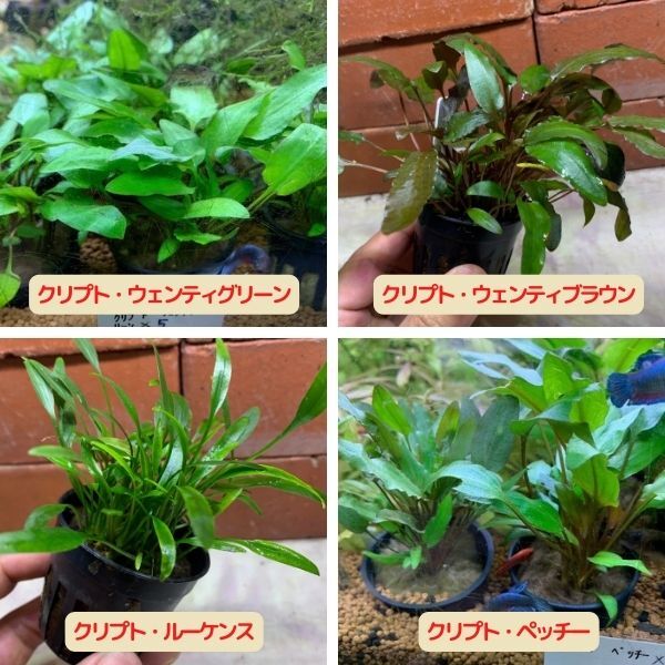 水草 クリプトコリネ 4種MIX 各1POT(計4POT) ウェンティグリーン/ウェンティブラウン/ルーケンス/ペッチー