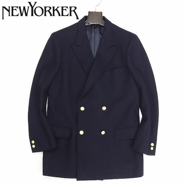 - 美品◆NEWYORKER ニューヨーカー ウール 金釦 ダブル 紺ブレザー ジャケット ネイビー 92 YA6