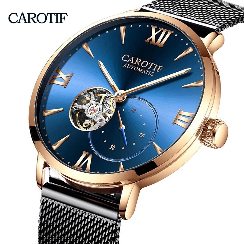 > Watch 腕時計 新品 未使用 ウォッチ 自動巻き 機械式 メンズ レディース アナログ メッシュ ステンレス ミリタリー 防水 耐衝撃 c393