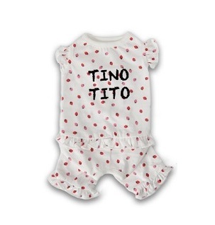 - 新品★TINOTITO★いちごプリントつなぎ★オールインワン★オフホワイト★XSサイズ★胴回り29~31cm★犬服