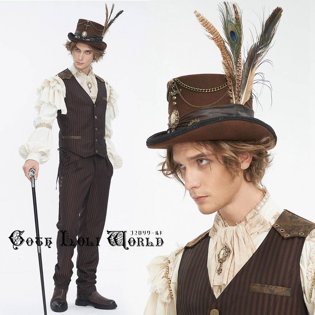 - AS188-S-M ゴールドチェーンギア 羽根つき ブラウン シルクハット ゴスロリワールド ゴシック パンク ロック ロリィタ ビジュアル系 V系