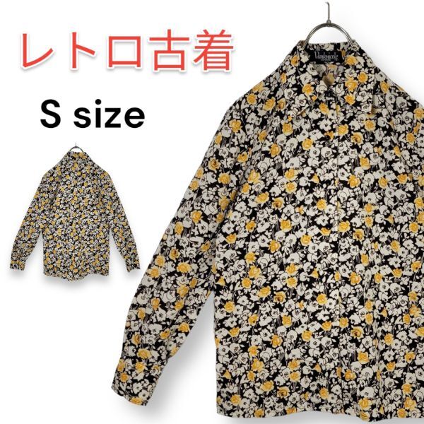 - 70s 80s 総柄 花柄 長袖シャツ ブラウス レディース レトロ サイケ 昭和ビンテージ 古着 匿名配送