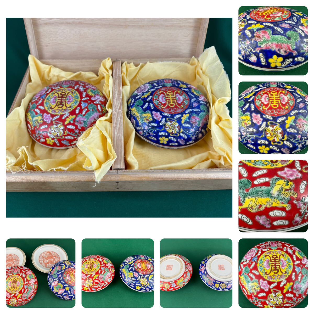 - ◆中国美術◆清乾隆 色絵 花龍紋様 合子一対 大清乾隆年製◆木箱
