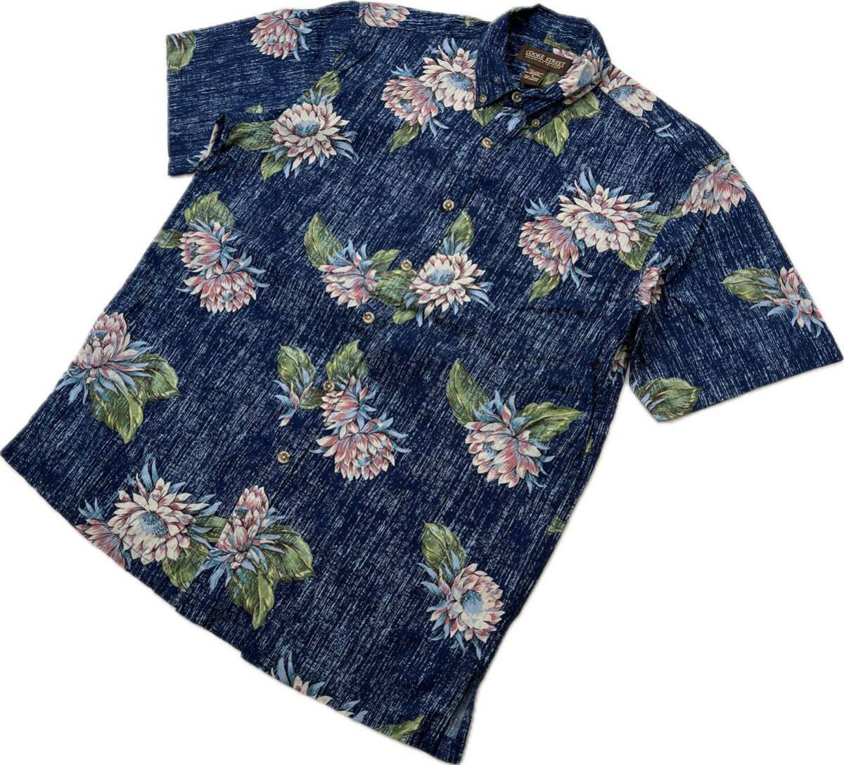 > Cooke Street ☆ クックストリート 総柄 花柄 アロハシャツ コットン ボタンダウン シャツ 半袖 ブルー S 春夏 アメカジ リゾート■S3731