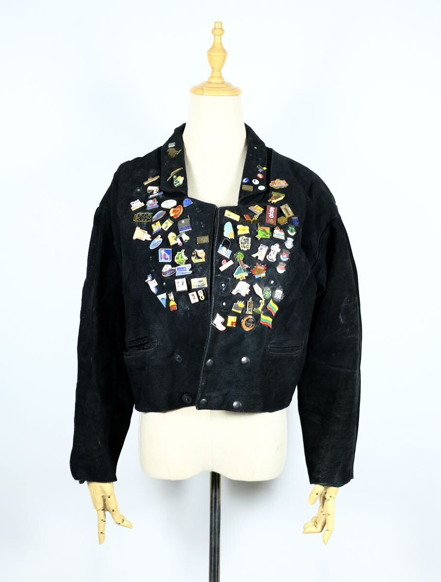 - 1960〜70s ビンテージ バッジカスタム レザージャケット 古着屋 デザイン アート ブローチ レア 海外仕入れ