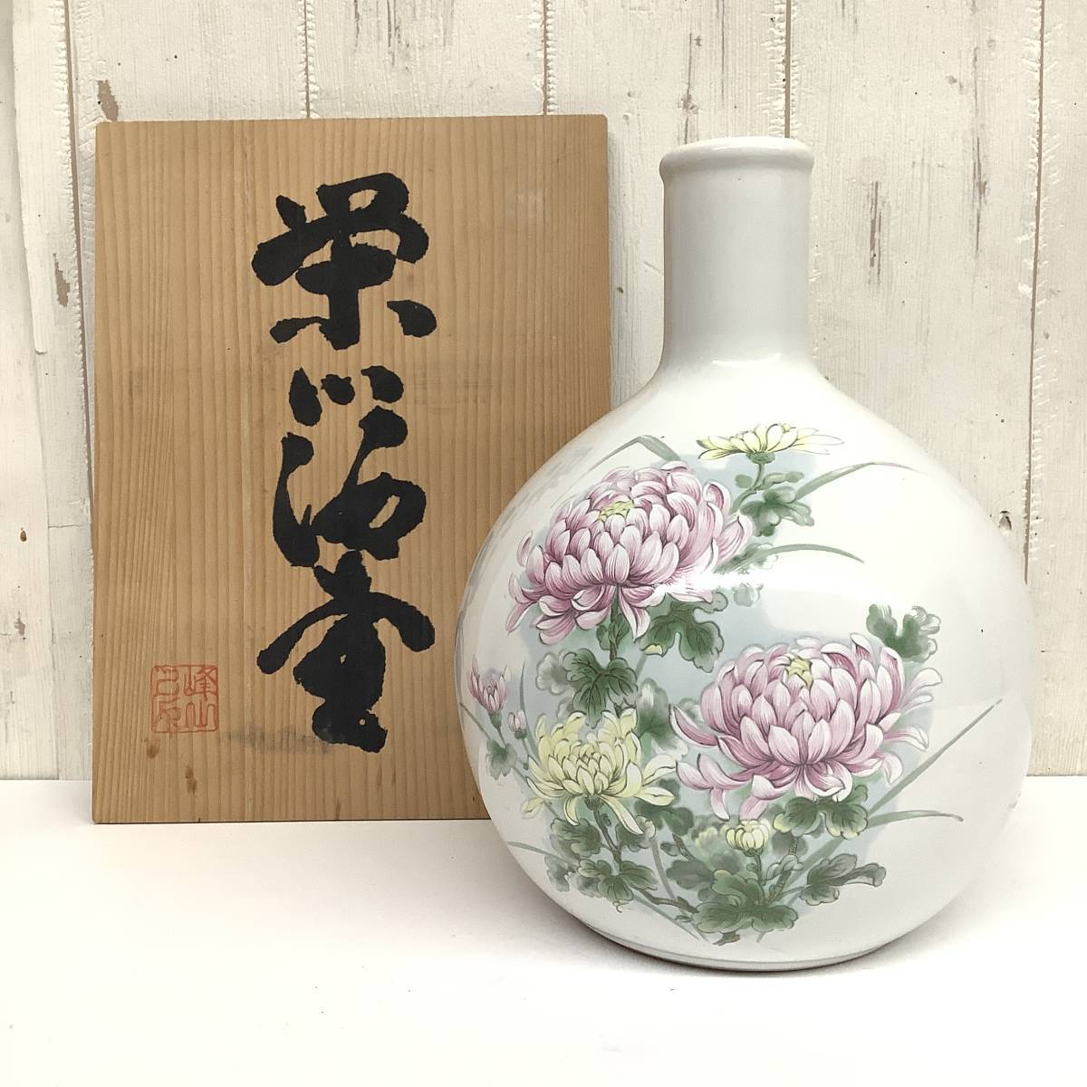 > 伝統工芸 工芸美術 美術陶器 *峰山窯 有田焼 花瓶 菊文 花器 花入 花生 フラワーベース 茶道具 高さ22cm 胴径17.5cm