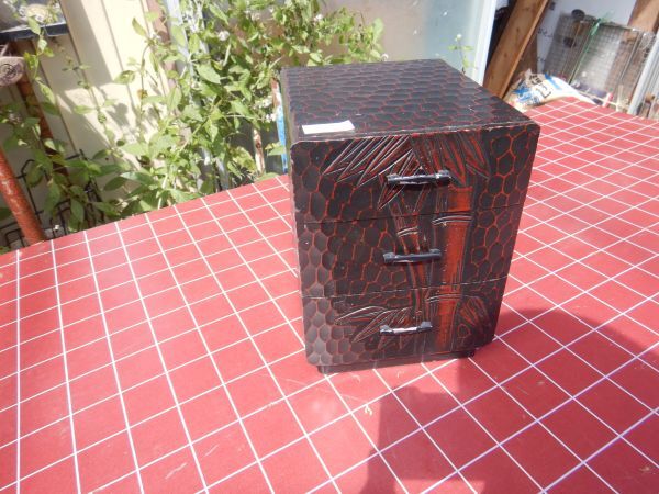- 鎌倉彫 081901 三段一木 木製 合板ではない 18X22XH24CM 日本製 工芸 日本JAPAN
