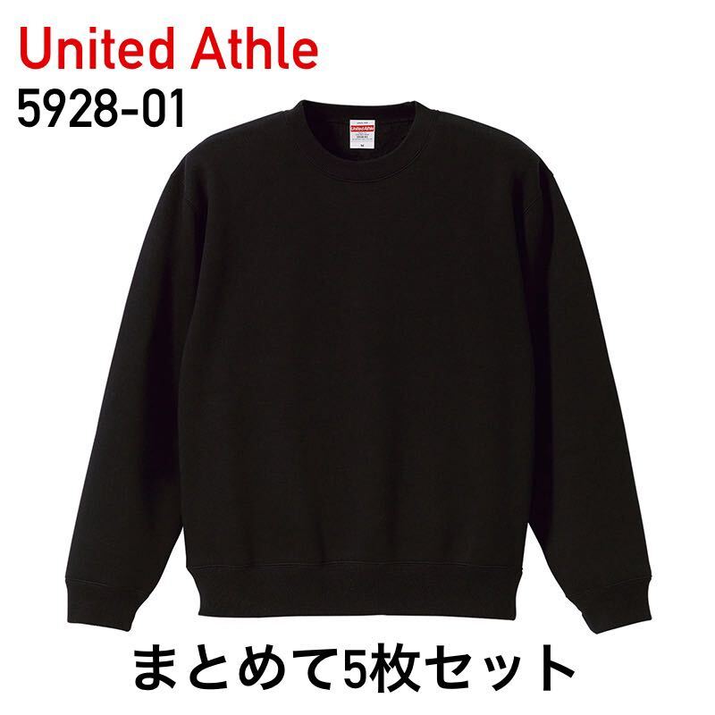 > 新品 United Athle ユナイテッドアスレ 5928-01 10.0オンス T/C クルーネック スウェット 裏起毛 XL 黒 無地 ブラック 5枚 セット