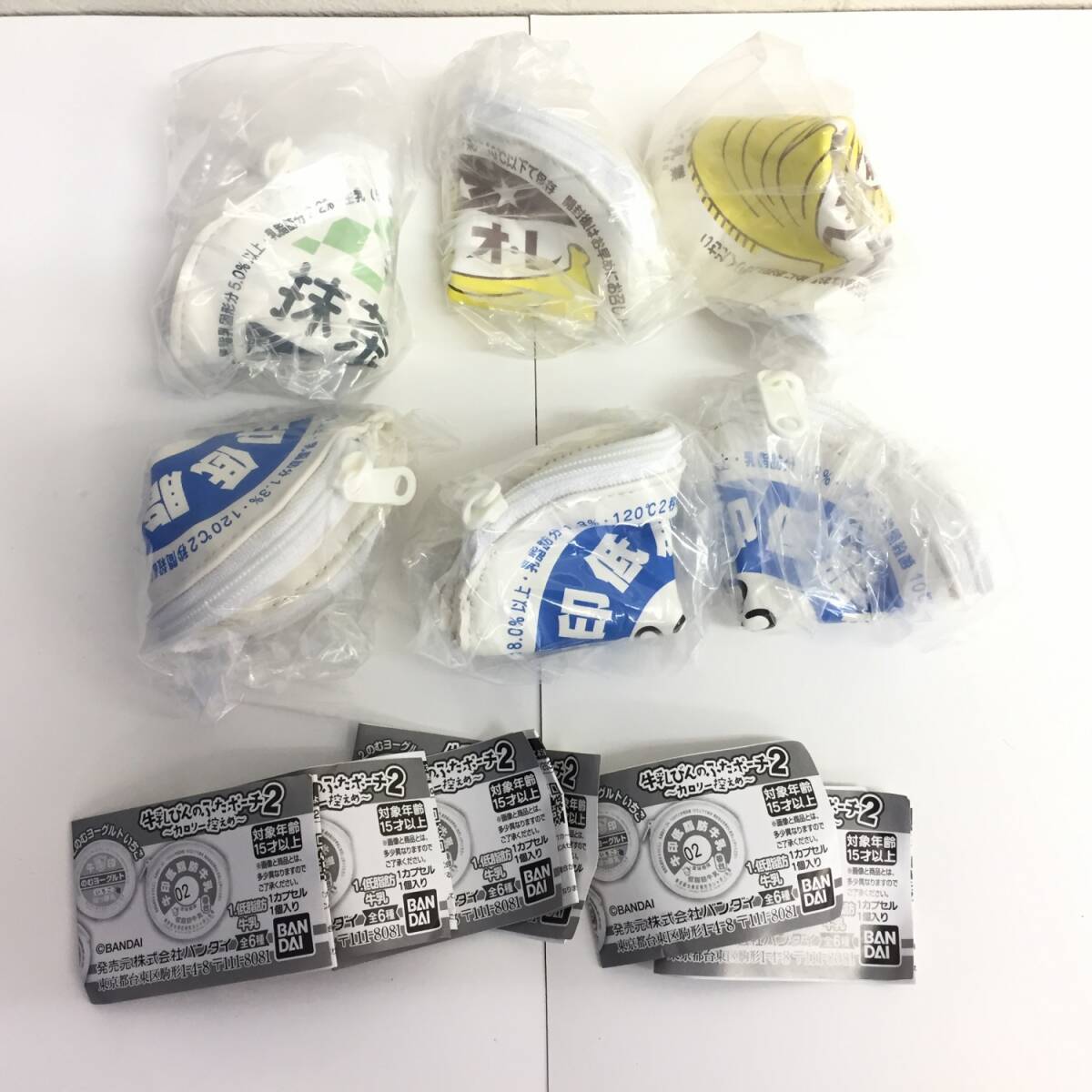 - [玩具] 景品「牛乳びんのふたポーチ2 カロリー控えめ」3種(6個)セット 低脂肪牛乳/抹茶オレ/バナナオレ ガシャポン ガチャポン バンダイ