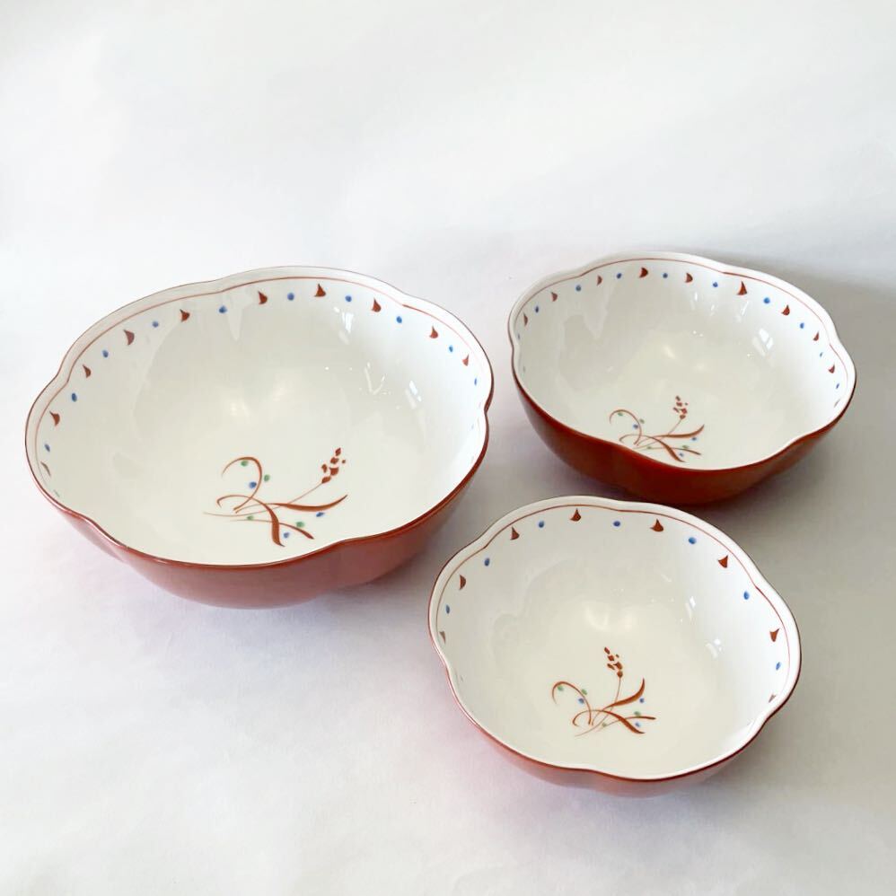 - 第一陶器 赤絵 三つ組鉢 器 食器 くらしすと 未使用保管品