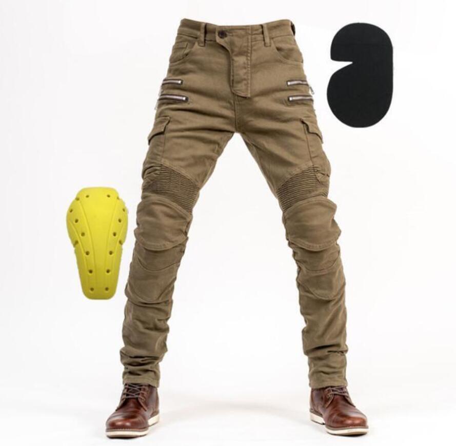 - 新入荷 / バイク用 ライディングパンツ プロテクター付き デニムパンツ オールシーズン 耐磨 ツーリングジーンズ ストレッチ / カーキ