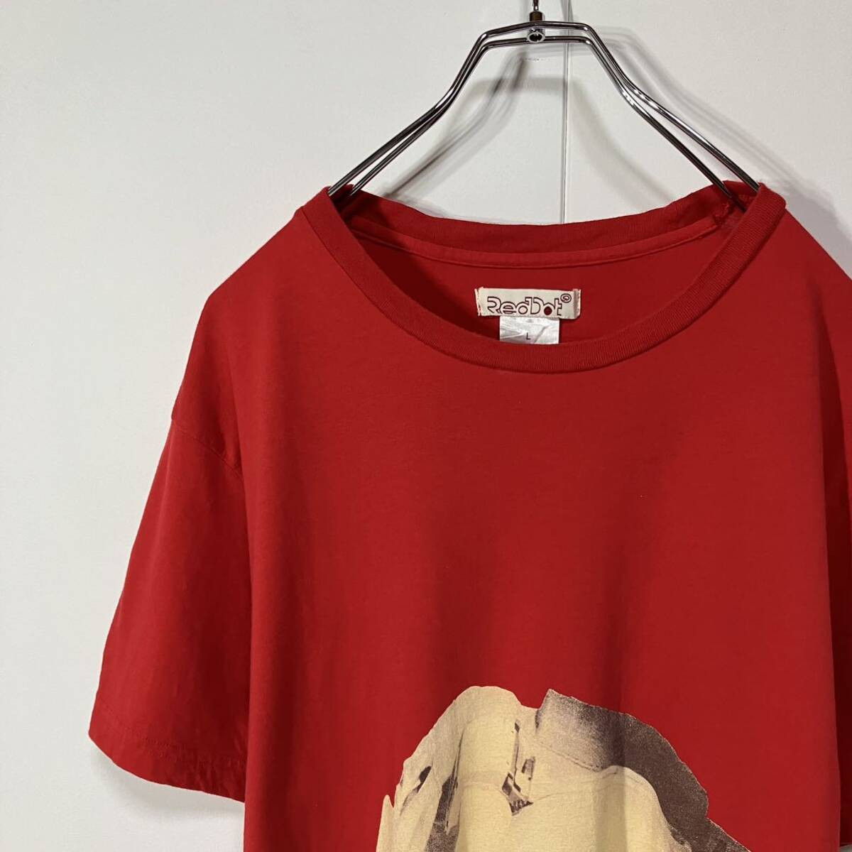 - 古着 宇宙飛行士 プリント デザイン クルーネック 半袖 Tシャツ レッド L