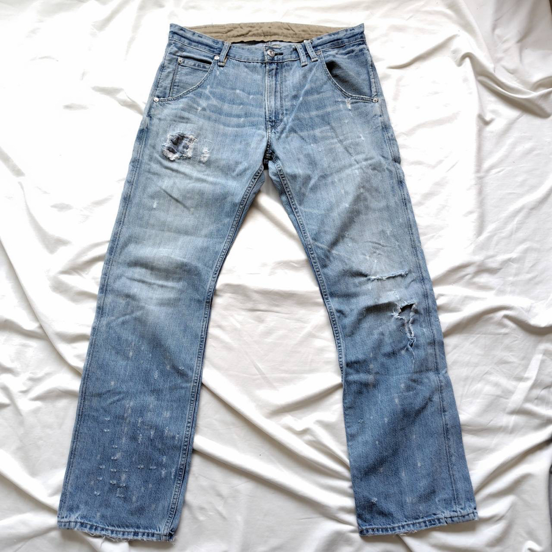 > 514 W34 Levi's リーバイス ベージュ紙パッチ ダメージ加工 デニム ブルー リペア加工 加工 ダメージ