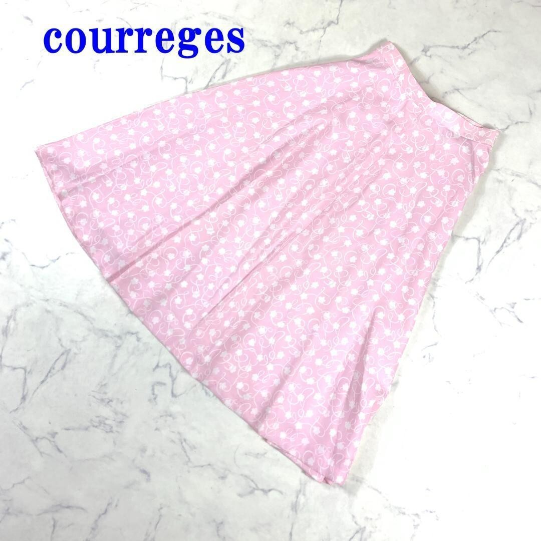 - クレージュ ロングスカート ピンク 花柄 フレアcourreges ポリエステル 9 C1047