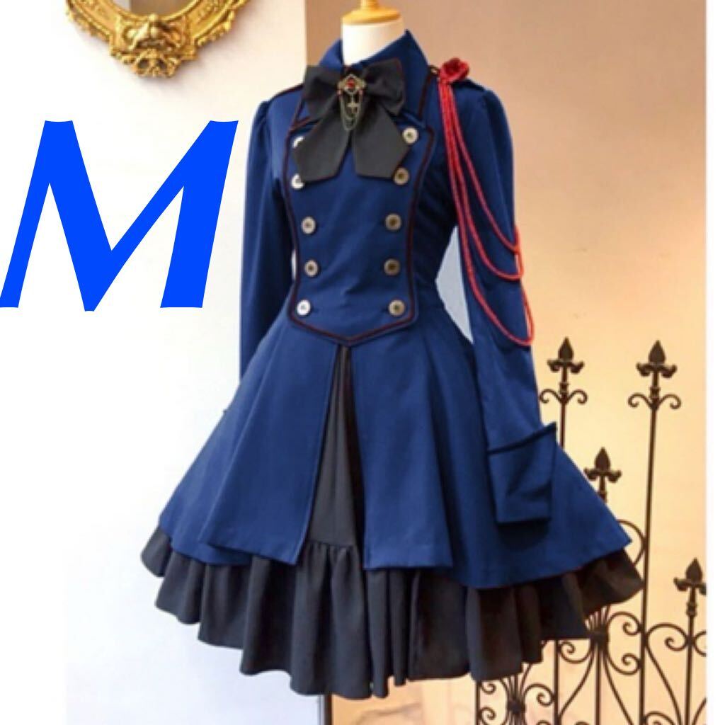 - 膝丈ワンピース 軍服 ロリータ ワンピース ゴスロリ ドレス ダンス クリスマス パーティ 衣装 青 ブルー M