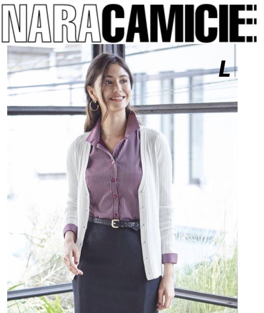 - naracamicie ナラカミーチェ ラメ入り ストライプ Vネックカーディガン パールボタン L グレー系