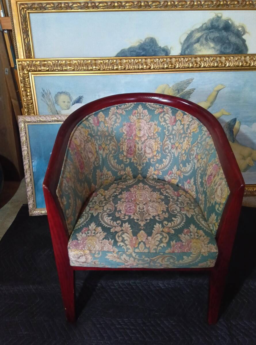 - 24090105① ラウンジチェア 椅子 アンティーク風 花柄 ソファ 木製フレーム