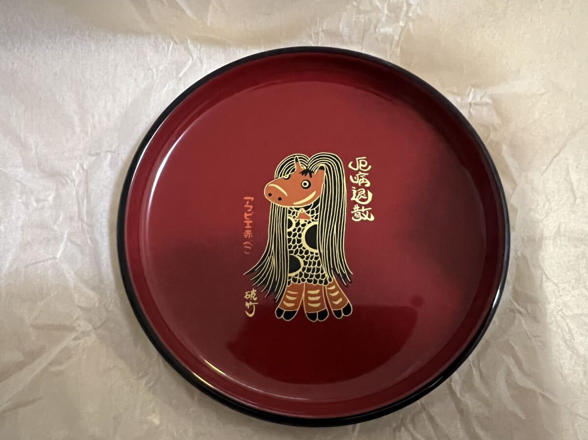 - 会津若松 ぬり一 アマビエ 赤べこ 飾り皿 漆器 漆 鶴ヶ城 新品未使用