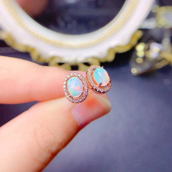 ナチュラルオパールピアス、925スターリングシルバー、証明書