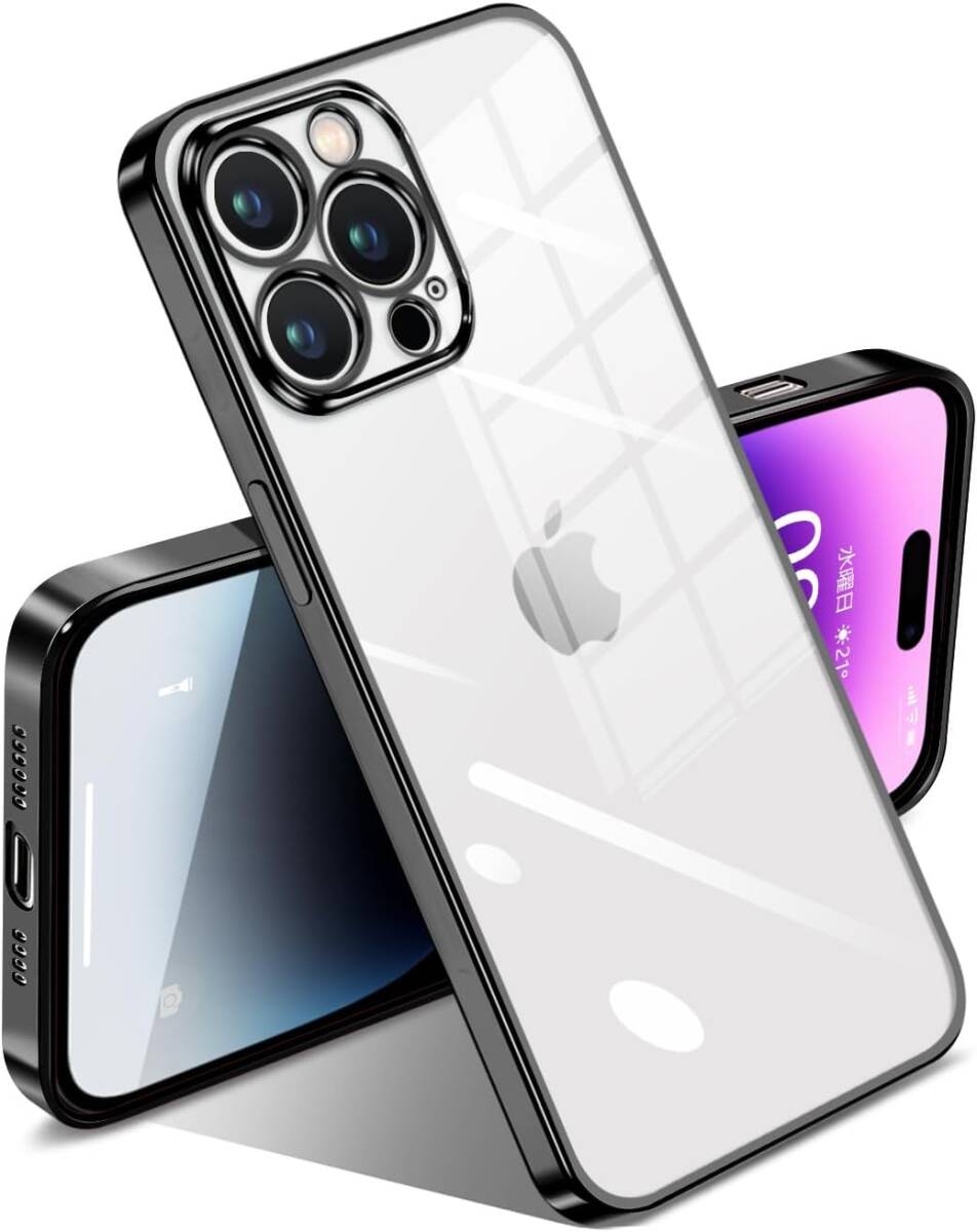 > iPhone 14 Pro ケース クリア 耐衝撃 透明 アイフォン14 Pro カバー メッキ加工 完全な保護 黄変防止 落下防止 (ブラック) P116