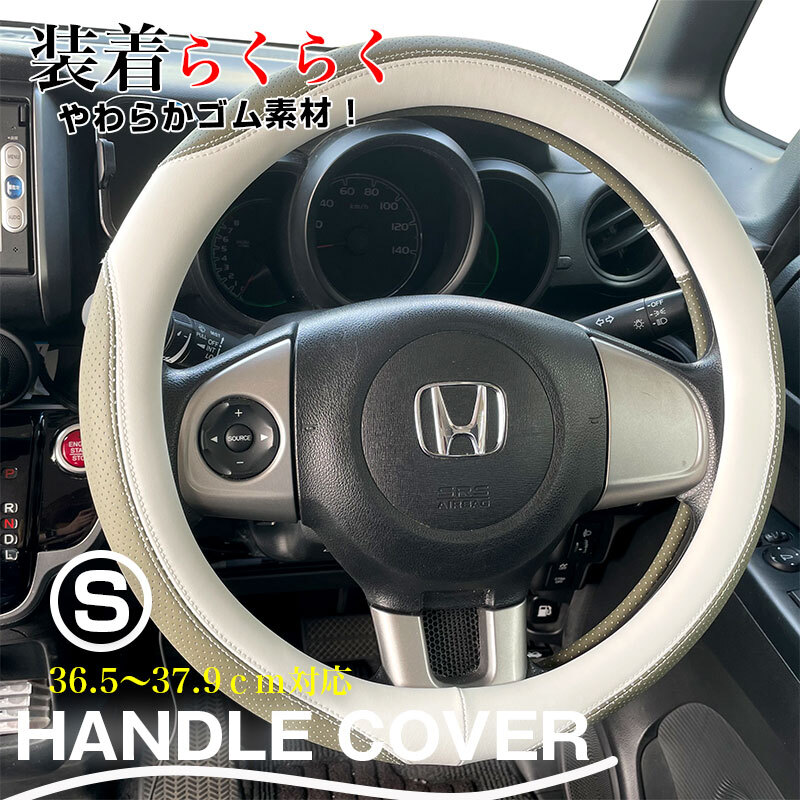 > ハンドルカバー S カーキ やわらかゴム 装着簡単 36.5cm~37.9cm かわいい 軽自動車 普通車 ステアリングカバー TOHPO TYHC-95336