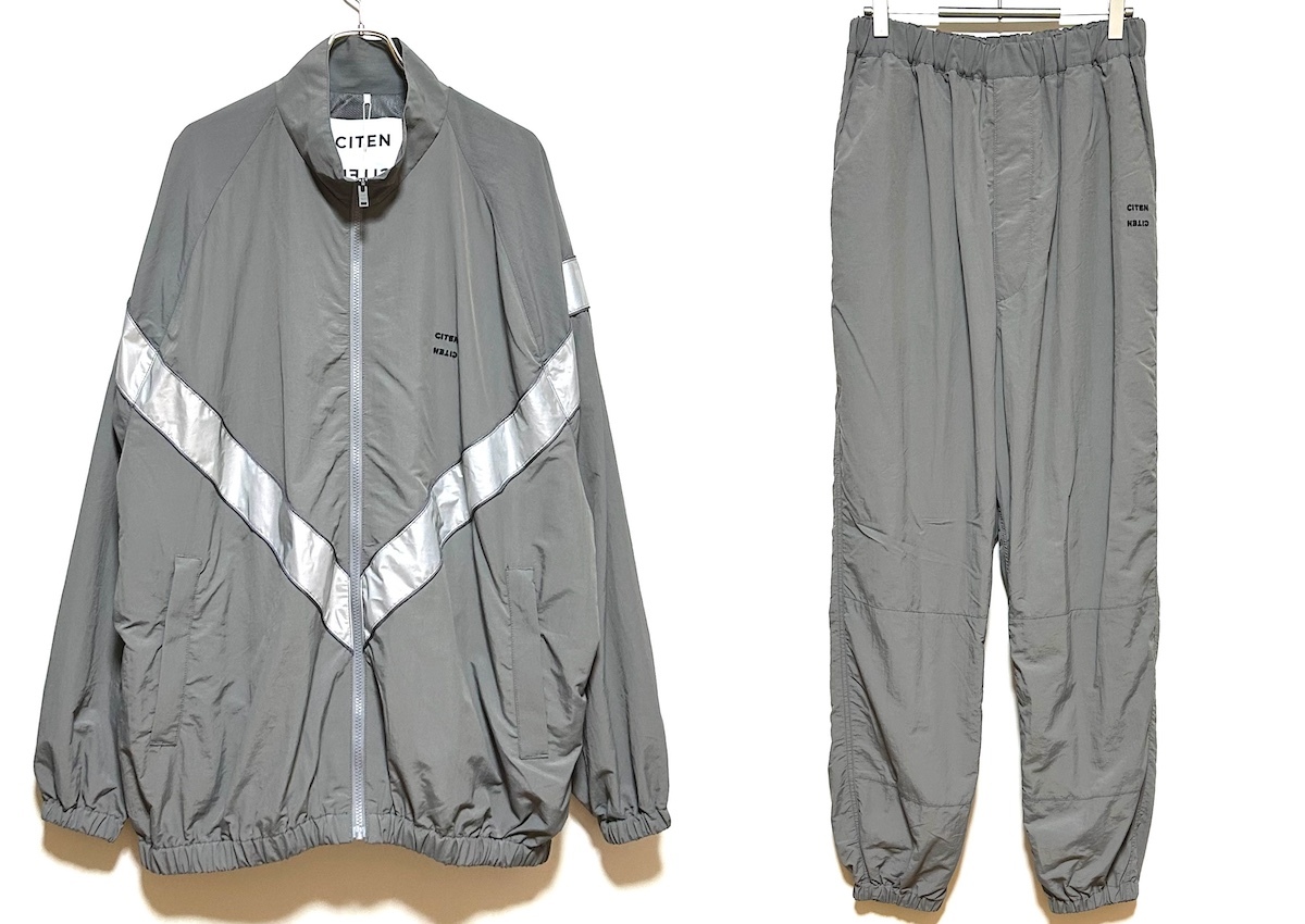 > 【新品】CITEN リフレクティブ トラック ジャケット・パンツ(上 Free:下 M)グレー シテン ナイロン セットアップ ルーズ シルエット