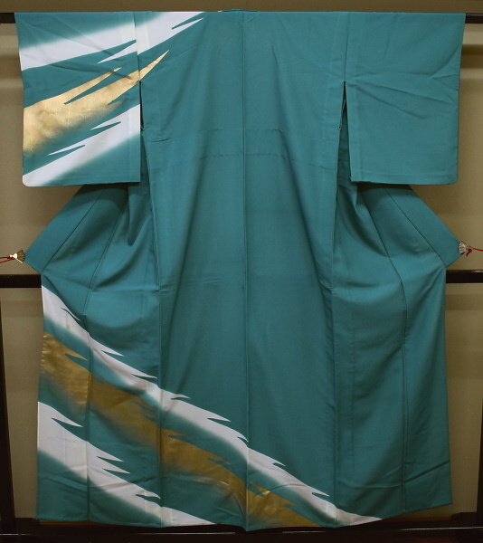 - A41-16【凛々】即決 中古品 ポリエステル 単衣 踊り用 舞台用 着物 緑