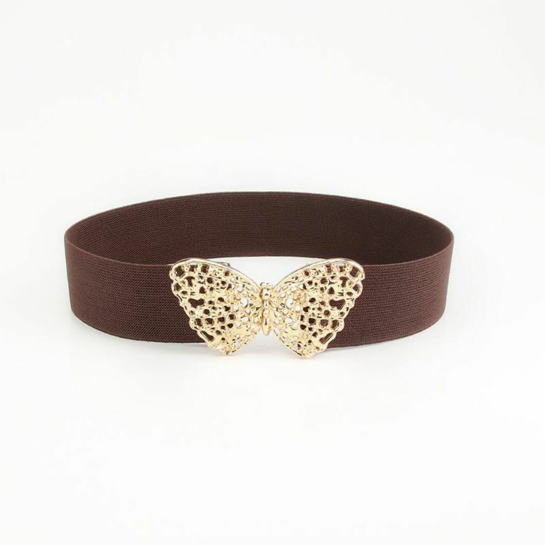 - コーヒー色 68cm~96cm 蝶々ゴールド バックル 幅広ゴムベルト