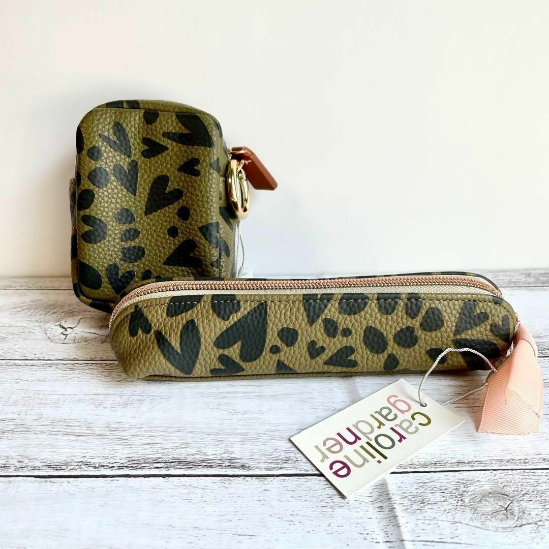 - キャロラインガードナー ミニポーチ ペンケース セット カーキ ブラックハート