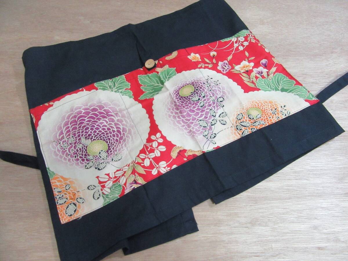 - f8816n 創作工房 匠佑 和柄 巻きエプロン 前掛け 黒系