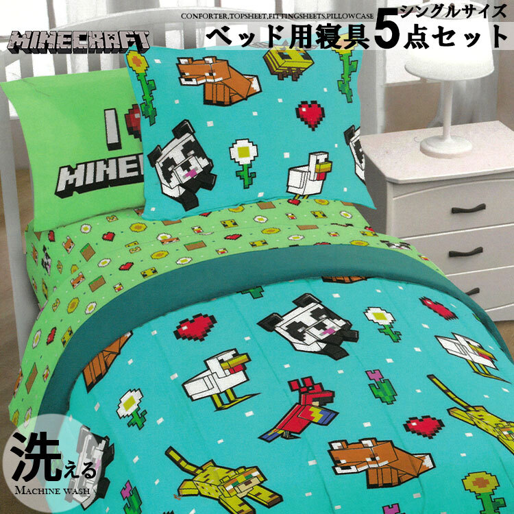 > マインクラフト 子供 大人 寝具 5点 セット シングル ベッディング マイクラ ベッドカバー 掛布団 シーツ 枕カバー Mincraft