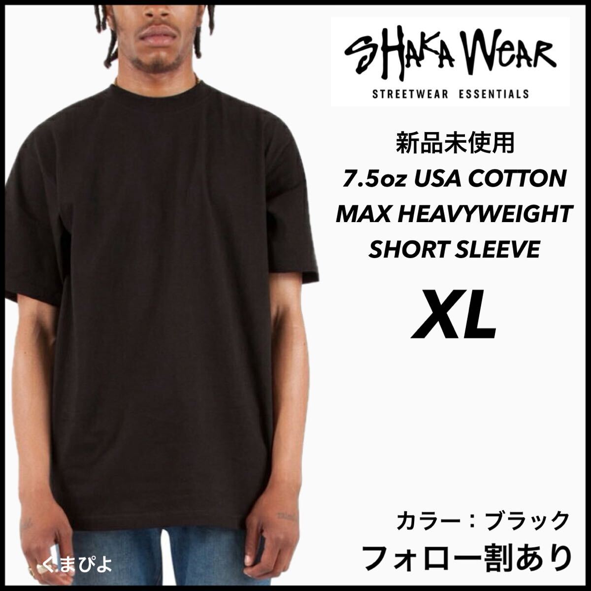- 新品 シャカウェア 7.5oz ヘビーウエイト 無地 半袖Tシャツ 黒 ブラック XL サイズ SHAKAWEAR