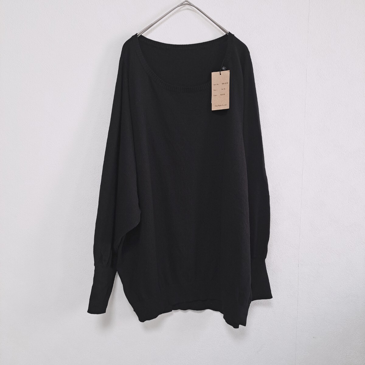 - 未使用タグ付き Laru バルーンスリーブ ゆったり ニット 4L-5L ブラック ルーズ シンプル レディース Y57