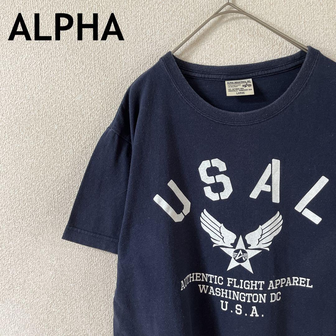 - ALPHA INDUSTRIES tシャツ 半袖 USAL Lメンズ 紺 S1