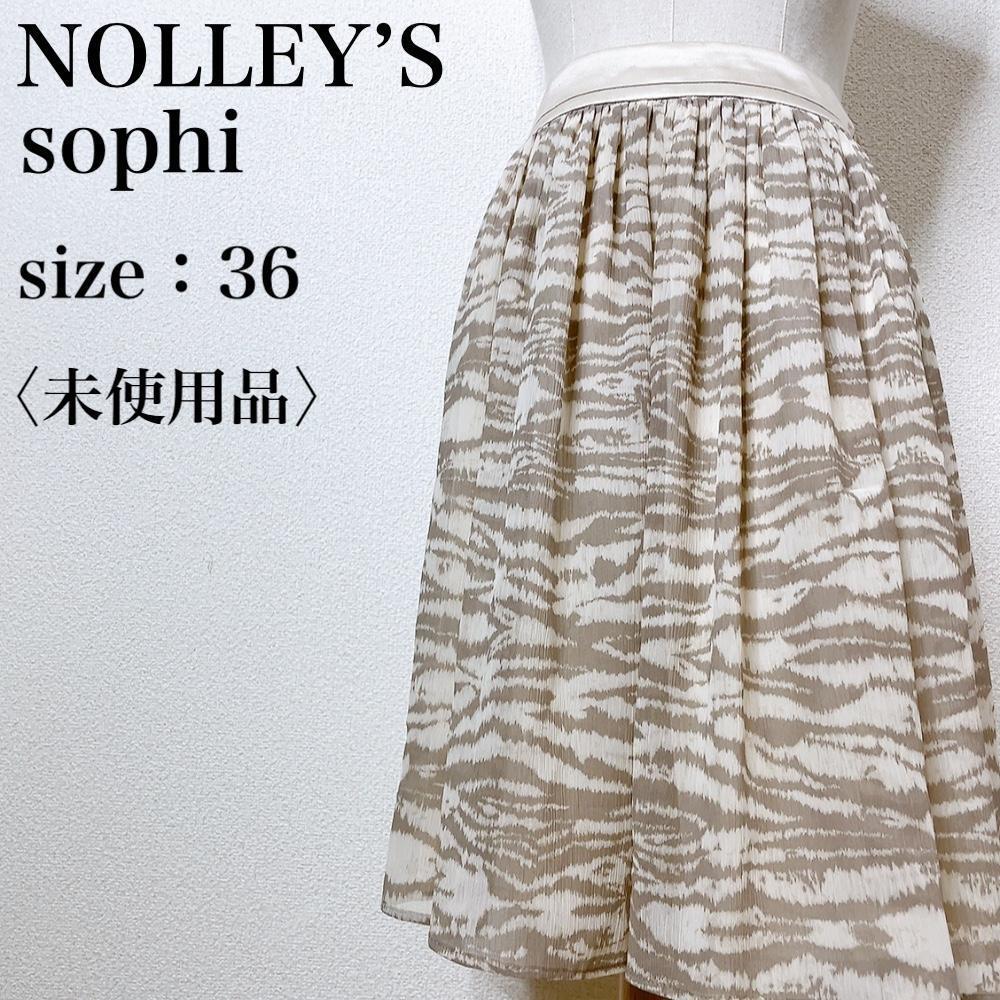 > 【未使用品】NOLLEY'S sophi ノーリーズソフィ ひざ丈 フレア 上品 ゼブラ柄ギャザースカート トレンド 動物柄 フェミニン ふんわり ほ04