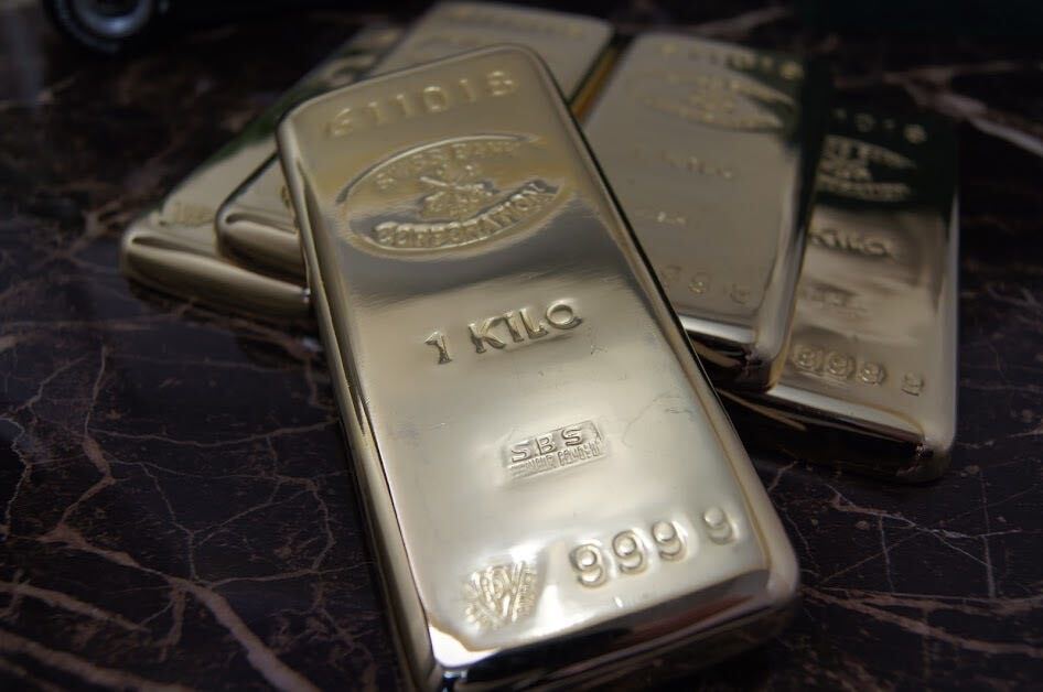 - 貴金属店☆展示用☆レプリカ延べ板24Kの1KILOタイプ☆新品☆類似玩具5点付きazu00pd.