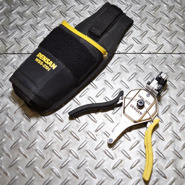 - 【新潟発】デンサン エコエフリッパー ケース付き DEM-203 WSS-25H ワイヤーストリッピングプライヤー Fケーブル 皮むき DENSAN 工具 中古