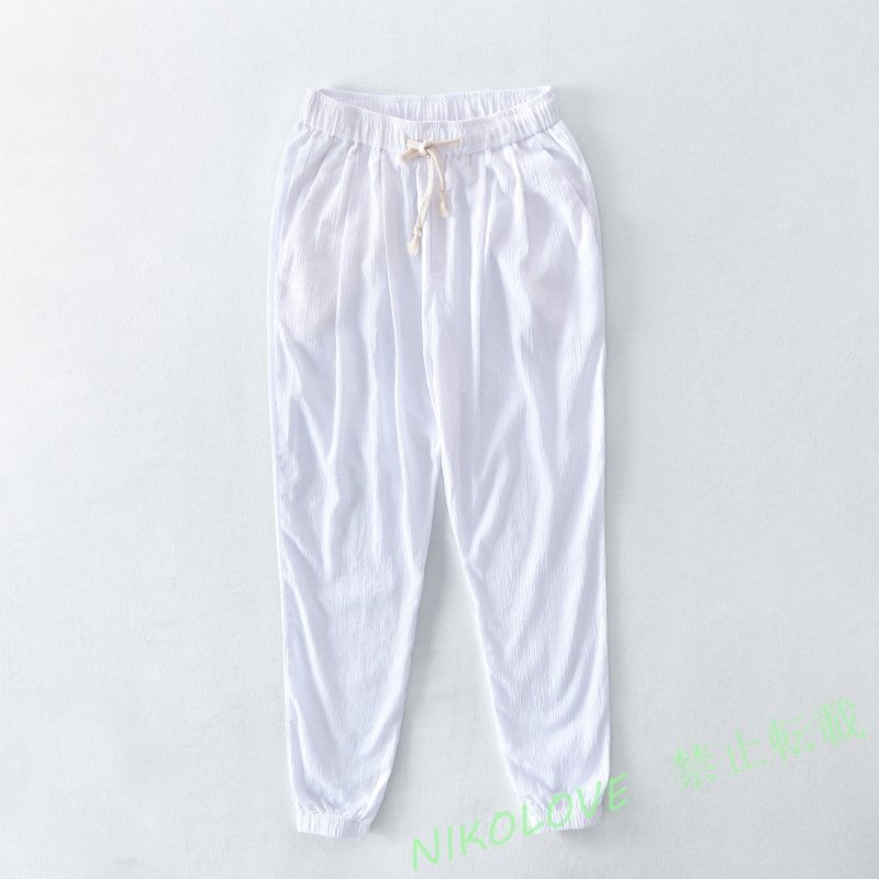 - 新品 選択可 メンズ リネンパンツ サマー 薄手 チノパン 綿麻 紳士 スラックス イージーパンツ 九分丈 リブパンツ 無地 ホワイト LF769