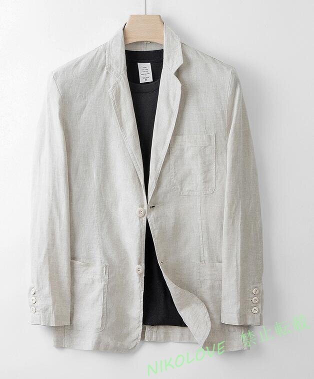 > 新品 100%麻 リネンテーラードジャケット ビジネスジャケット ブレザー メンズ 2ボタン シングル カジュアル 亜麻色 2XL LF740